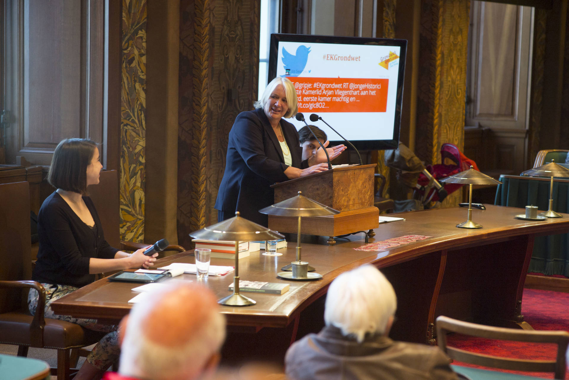 De zes hoorcolleges die de Eerste Kamer zaterdag in samenwerking met het Genootschap jonge historici heeft gehouden in het kader van het GrondwetFestival, hebben veel belangstelling getrokken. Bij alle colleges waren de bankjes waar normaal op de dinsdagse vergaderdag de 75 Eerste Kamerleden zitten allemaal bezet. De colleges werden gegeven door jonge historici, Eerste Kamerleden en Voorzitter en Griffier van de Eerste Kamer. Het publiek in de zaal kon ‘Kamervragen’ stellen, maar ook via Twitter reageren (#EKGrondwet).