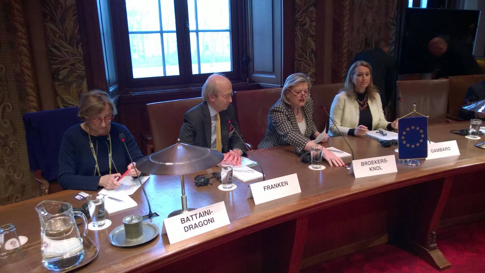 De commissie werd bij het begin van haar vergadering welkom geheten door de Voorzitter van de Eerste Kamer, Ankie Broekers-Knol. Zij wees erop dat de commissie eind vorig jaar internationale richtlijnen heeft aanbevolen voor de bescherming en het herstel van beschadigd en verwoest cultureel erfgoed. De gebeurtenissen in Syrië en Noord-Irak van de laatste maanden hebben helaas bevestigd hoe opportuun en noodzakelijk de aanbevelingen zijn. “I am personally appalled by the acts of destruction in Northern Iraq and Syria that we have witnessed in the past weeks. Not only human beings are suffering immensely in those regions, but millenia old cultural heritage is savagely destroyed. All things of value are defenseless against barbarism”, aldus mevrouw Broekers-Knol.
