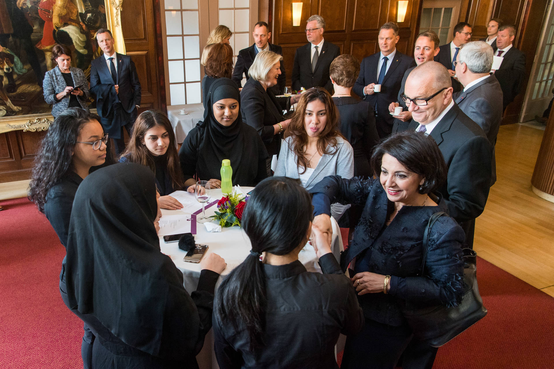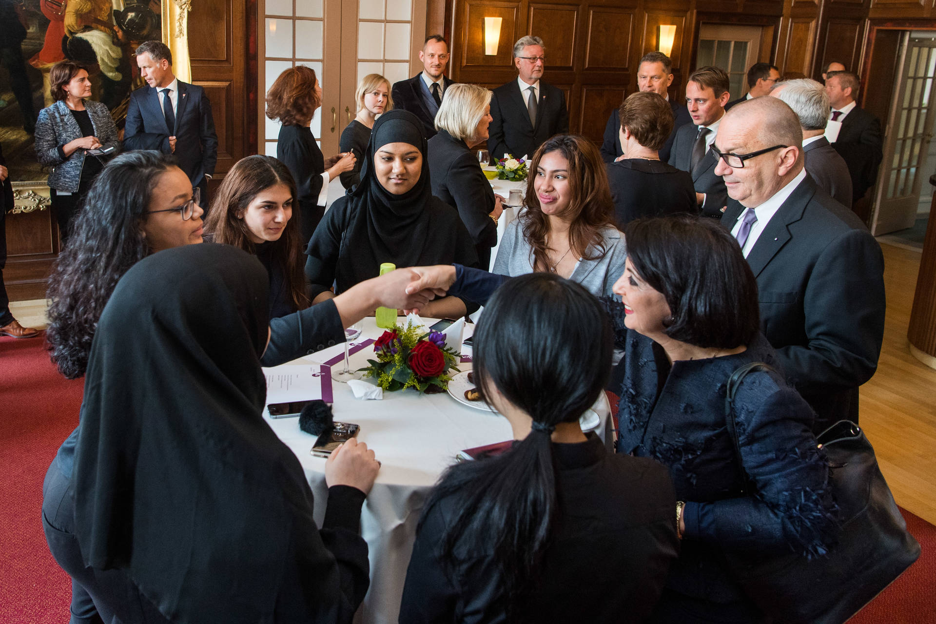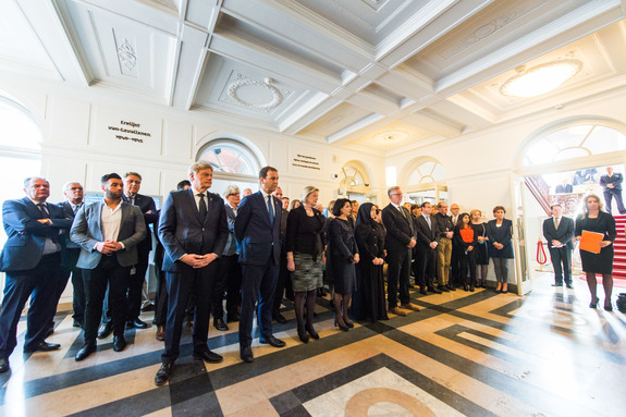 Vervolgens legden de Voorzitters van de Eerste en Tweede Kamer, Ankie Broekers-Knol en Khadija Arib, een krans namens de Staten-Generaal, gevolgd door Vice-premier Lodewijk Asscher en Staatssecretaris Martin Van Rijn van Volksgezondheid, Welzijn en Sport namens de Ministerraad van het Koninkrijk, en de rector en een leerling van de Johan de Witscholengroep namens hun school.