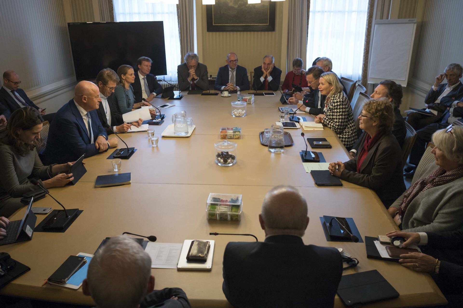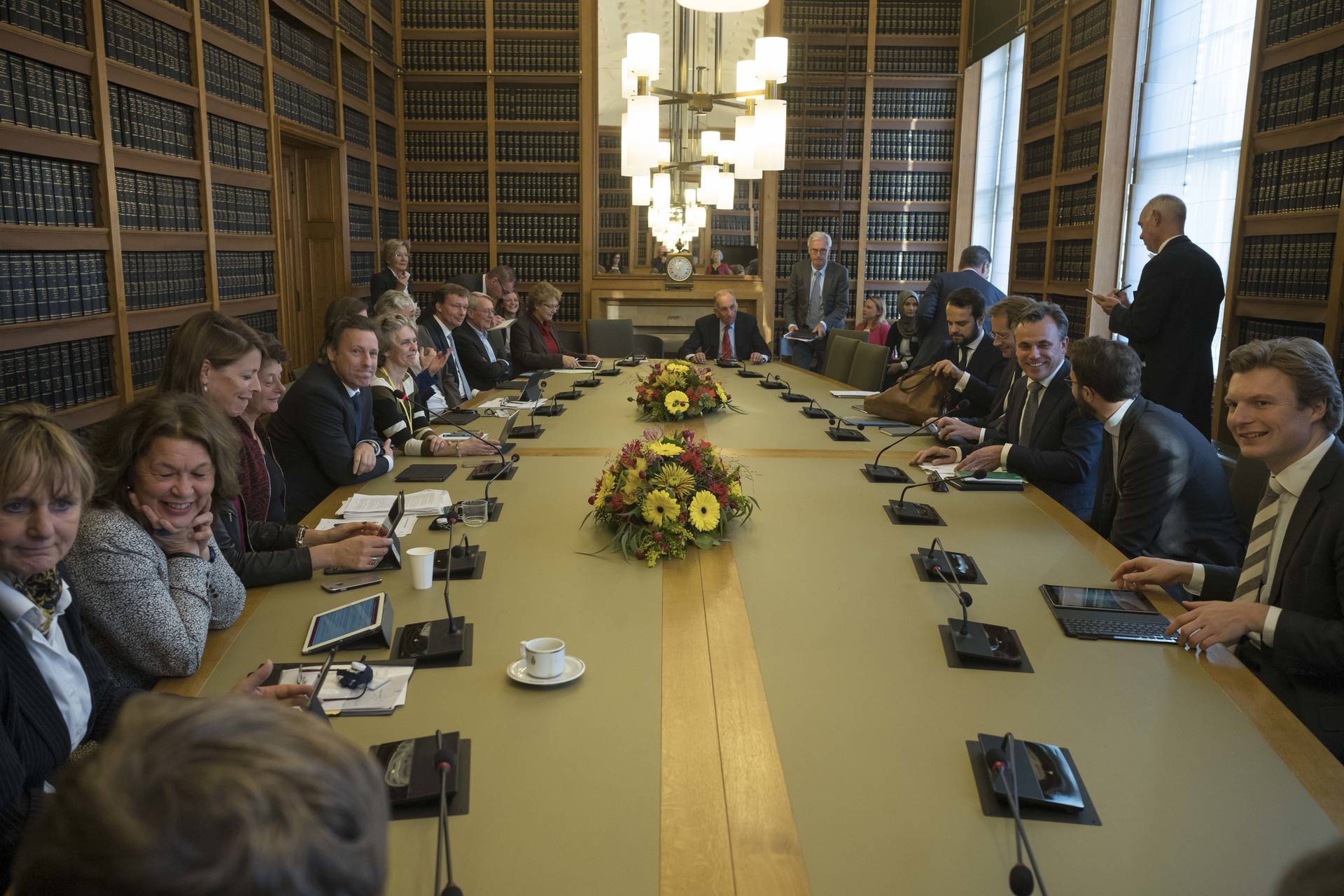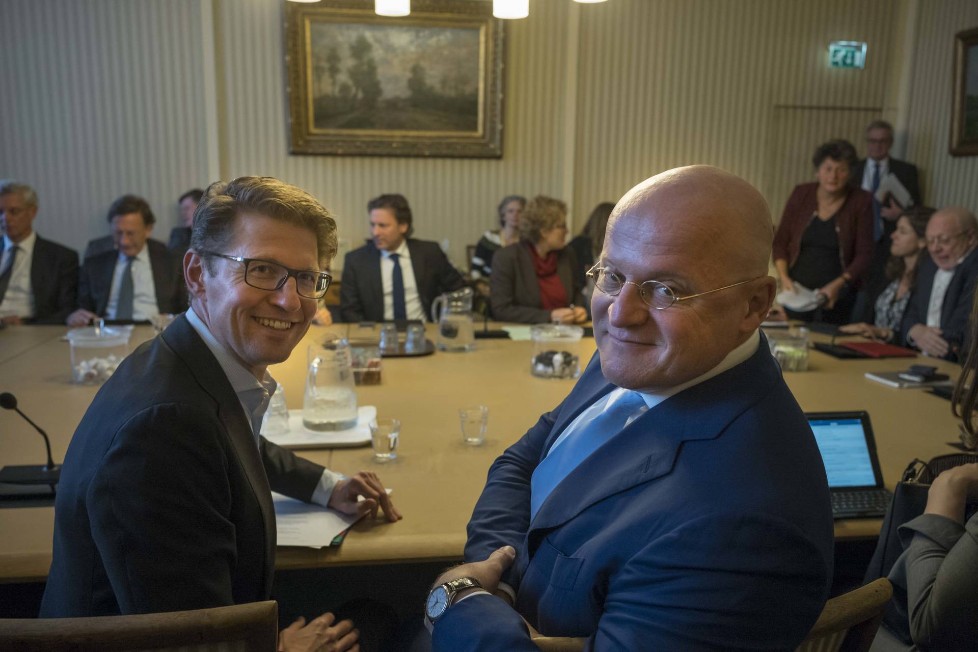 De nieuwe bewindslieden van het ministerie van Justitie en Veiligheid hebben dinsdag een informeel kennismakingsgesprek gevoerd met de commissies Justitie en Veiligheid, en Immigratie & Asiel/JBZ-Raad van de Eerste Kamer. Minister Ferdinand Grapperhaus van Justitie en Veiligheid, minister Sander Dekker voor Rechtsbescherming en staatssecretaris Mark Harbers van Justitie en Veiligheid spraken een uur met de leden van de betreffende commissies. De komende maanden zullen alle bewindslieden van het nieuwe kabinet Rutte-III successievelijk dit soort kennismakingsgesprekken in de Eerste Kamer voeren.