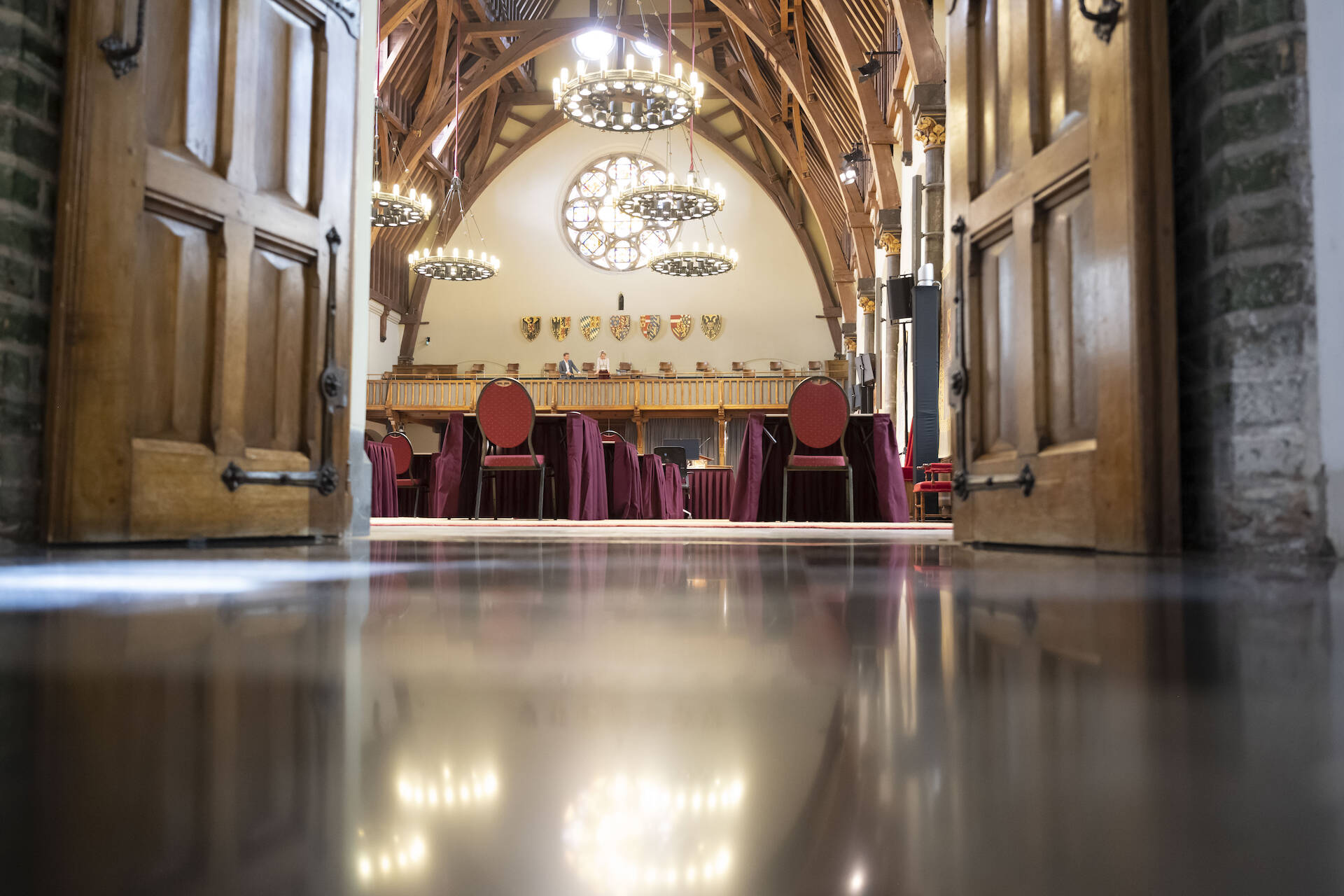 De Eerste Kamer vergadert sinds het uitbreken van corona gewoon door. De plenaire vergadering vindt als gevolg van de coronamaatregelen sinds dinsdag 12 mei 2020 fysiek plaats in de Ridderzaal, commissievergaderingen vinden vrijwel uitsluitend langs digitale weg plaats. De wekelijkse fractievergaderingen vinden ook (deels) digitaal plaats. Verder vergadert het College van Senioren, bestaand uit de Eerste Kamervoorzitter, de beide Ondervoorzitters en fractievoorzitters van de partijen in de Kamer, eveneens als gevolg van de coronacrisis digitaal.