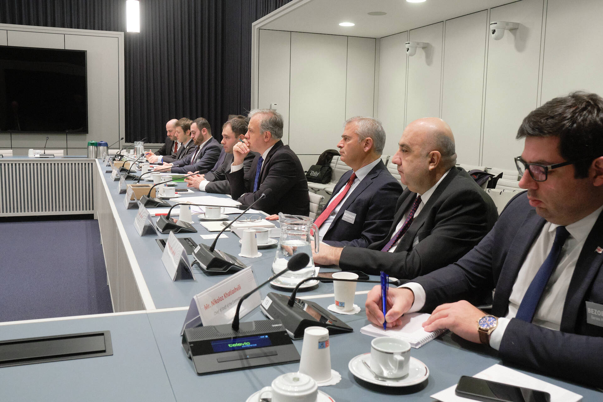 Dinsdag 22 november ontvingen de commissies voor Buitenlandse Zaken, Defensie en Ontwikkelingssamenwerking (BDO) en voor Europese Zaken (EUZA) een delegatie van het parlement van Georgië. Onder leiding van Margreet de Boer (GroenLinks) spraken de Eerste Kamerleden met de Georgische leden van de commissie voor Buitenlandse Zaken van de Sakartvelos Parlamenti, de volksvertegenwoordiging van Georgië. De delegatie stond onder leiding van commissievoorzitter Nikoloz Samkharadze van de Georgische Dream-Democratic partij.