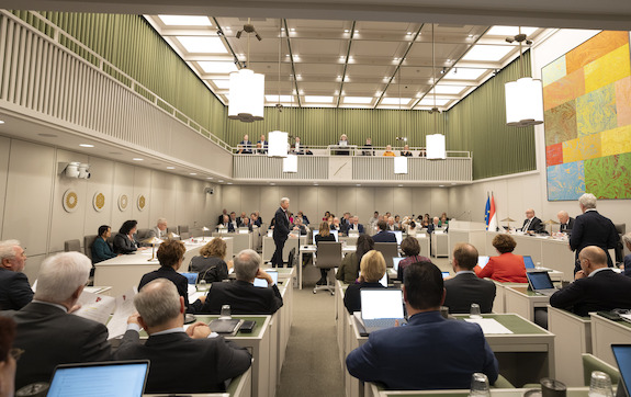 -De motie-Hartog verzoekt de regering om te kiezen voor constructievere manieren om goed financieel beheer binnen het Koninkrijk te bewerkstelligen, die niet tot beperking van de financiële ruimte voor de ontvangende landen leiden, via de uitgaven dan wel de inkomstenkant. Staatssecretaris Van Rij had senator Hartog (Volt) verzocht de motie aan te houden zolang de onderhandelingen nog gaande zijn.