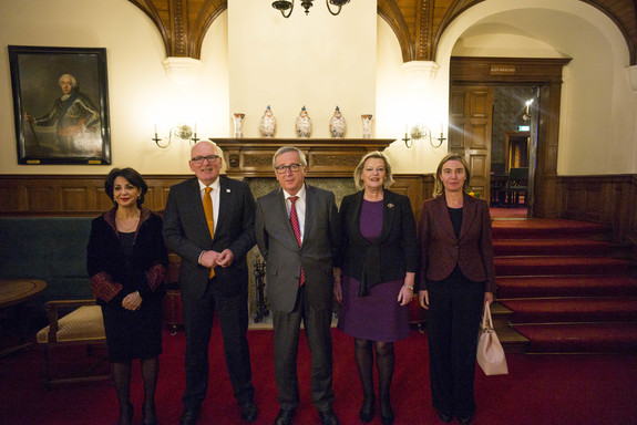 Voor de eerste keer in de Nederlandse parlementaire geschiedenis bracht de voltallige Europese Commissie een bezoek aan de Staten-Generaal. Op donderdag 7 januari 2016 ontvingen leden van de Eerste en Tweede Kamer de Commissarissen in de plenaire zaal van de Eerste Kamer. Dat gebeurde in het kader van het EU-Voorzitterschap, dat Nederland vanaf 1 januari vervult: sinds enkele jaren vindt ieder halfjaar, aan het begin van een Voorzitterschap van de Raad van de Europese Unie, een ontmoeting plaats tussen het parlement van het ontvangende land en de Europese Commissie. In het gesprek stonden twee onderwerpen centraal: de vluchtelingenkwestie en de begrotingssystematiek. De Europese Commissie onder leiding van president Jean-Claude Juncker werd welkom geheten door Voorzitter Ankie Broekers-Knol van de Eerste Kamer en tijdelijk Voorzitter Khadija Arib van de Tweede Kamer.