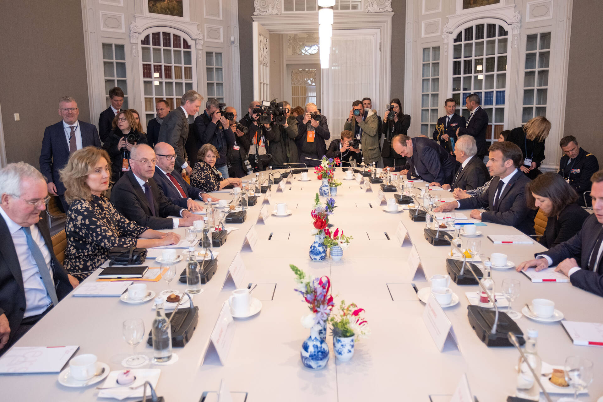 De Voorzitters van Eerste en Tweede Kamer ontvingen dinsdag 11 april de president van Frankrijk, Emmanuel Macron. Macron is in Nederland voor een tweedaags staatsbezoek. Eerste Kamervoorzitter Jan Anthonie Bruijn en Tweede Kamervoorzitter Vera Bergkamp ontvingen de president in de Eerste Kamer in Den Haag.