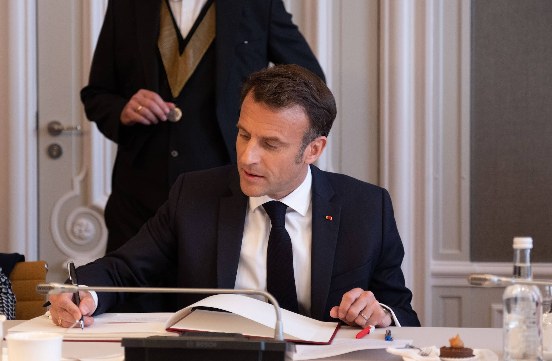 In zijn antwoord ging president Macron in op de banden tussen lidstaten van de Europese Unie. Deze banden lopen niet alleen via Brussel, maar moeten ook op bilateraal niveau worden onderhouden. Daarnaast benoemde Macron het belang van eenheid in Europa. Door de oorlog in Oekraïne verdedigen we onze gezamenlijke waardes niet alleen meer op grond van regels.